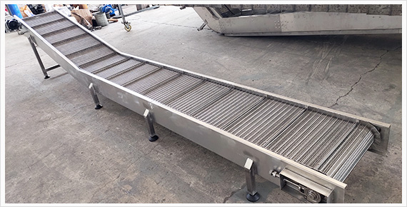 20年專注于輸送機械研發。采用重型輸送鏈板,承載能力達3T/m2,金屬網帶耐高溫可達1300度??稍O計長達100M輸送機。
